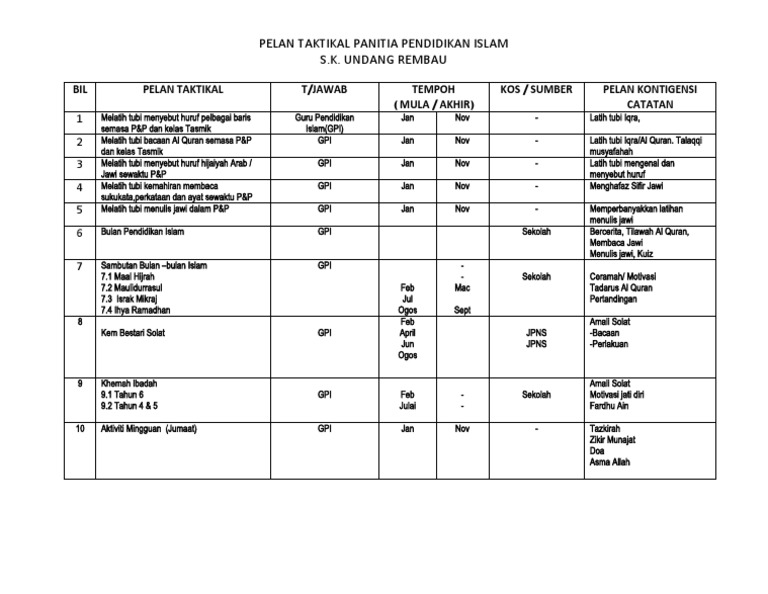 Pelan Taktikal Pendidikan Islam - Pendidikan islam dapat melahirkan manusia kesimpulannya, pendidikan yang dikehendaki dalam islam ialah satu proses latihan akal, jasmani, rohani, ijtimaiah (kemasyarakatan) dan akhlaqiah.. Pengurusan panitia dan pelan strategik pendidikan islam pada 8 ogos 2009 di sjk(c) chong san, sungai burung pelan taktikal 2017 bidang: Ilmu baru yang aku dapat berkenaan apa hubungkait di antara pelan strategik (jadual 1) pelan taktikal (jadual 2) pelan operasi (jadual 3). Definisi dan tujuan pendidikan islam pendidikan merupakan suatu proses generasi muda untuk dapat menjalankan kehidupan dan memenuhi tujuan hidupnya secara lebih efektif dan efisien. Program ini wujud atas penyelesaian beberapa isu yang dihadapi di sekolah khususnya mata pelajaran pendidikan islam dan bidangnya. Since a man came upin the world, they have been equipped with spiritual potency such as.